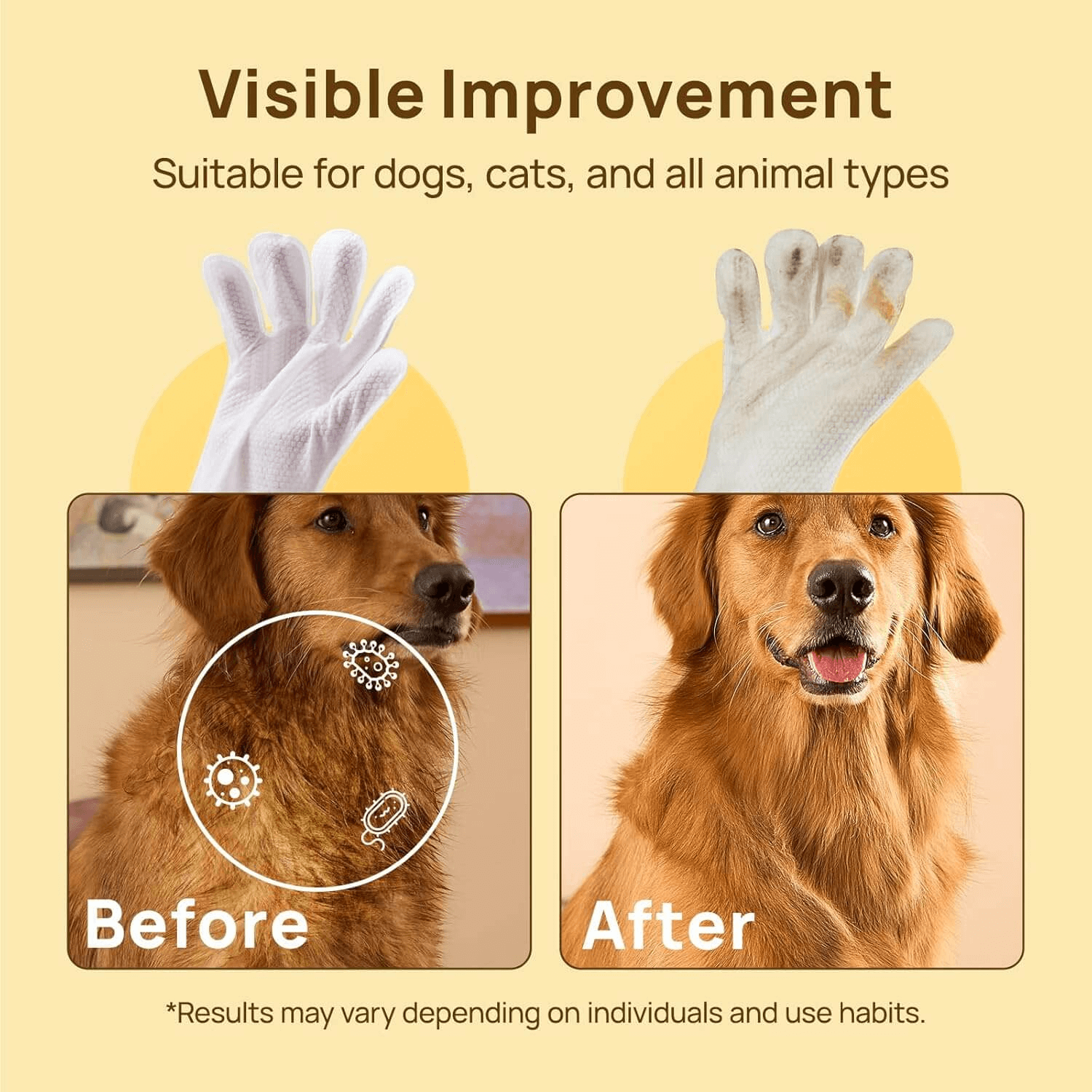 - Free gloves that clean and nurture hair, suitable for both dogs and cats.